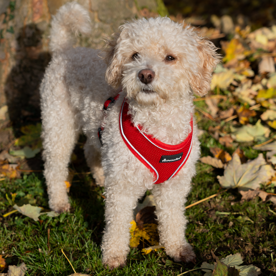 The All Pet Solutions dog harness was designed to minimise strain on your dog and reduce pulling whilst on the lead. It has a strong, wipeable fabric on the outside and a soft, breathable air mesh fabric on the inside. This makes it much more comfortable for your dog to wear than a standard harness, and its reflective edging provides added visibility and safety for your dog. Available in four sizes and many different designs to keep your pooch super stylish.