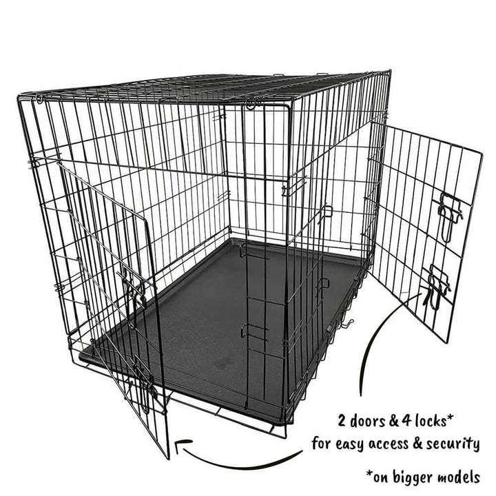 Featuring two doors the kennel can be accessible through the front and side doors, allowing added flexibility when getting your dog into the crate.