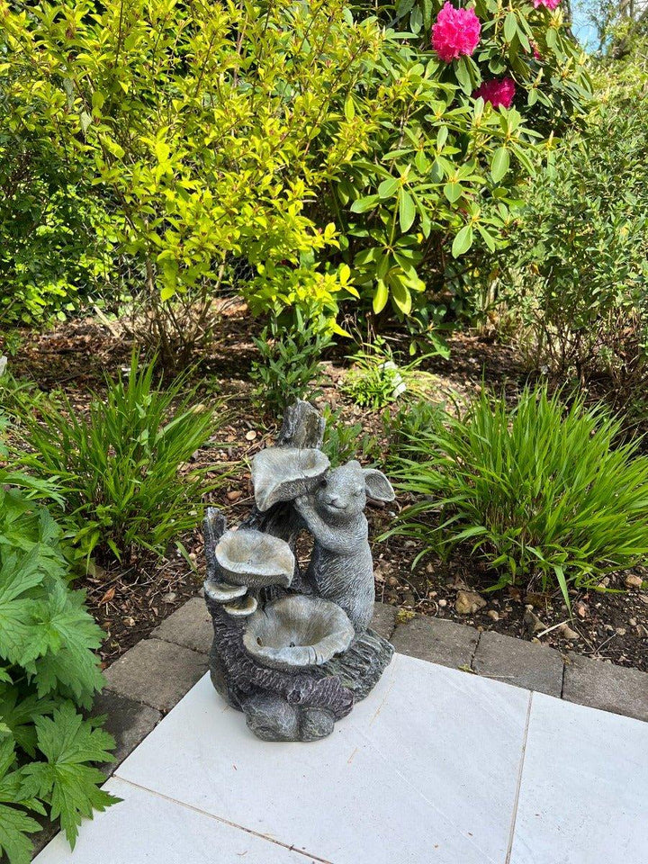 Rabbit Waterfall Feature 3 Water Bowls with LED Lights - Solar Panel 46x32x26